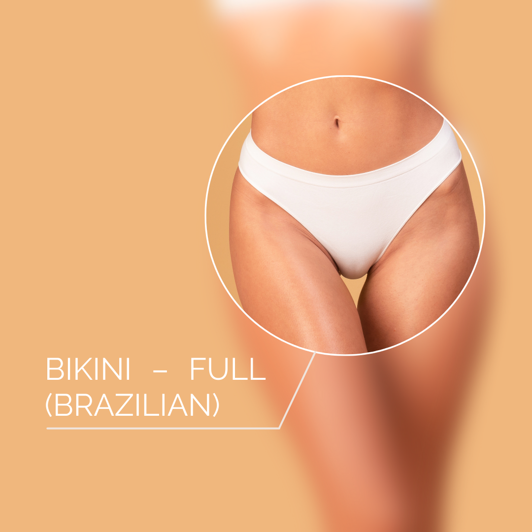 Often referred to as the Brazilian, full bikini laser hair removal encompasses the bikini line extending slightly beyond the underwear, as well as the entire area and central portion of the buttocks. This region is highly sensitive, making it unsuitable for shaving or waxing, as it may heighten the risk of irritation and infection.