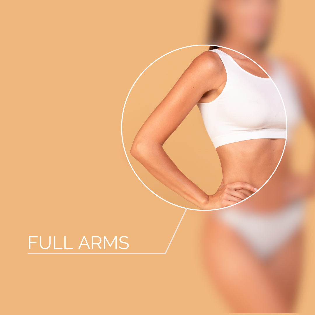 Many women desire smooth, hairless arms, but traditional methods like shaving or waxing are tedious and can lead to unwanted stubble and skin irritations. Laser hair removal offers a solution by not only eliminating the need for constant shaving but also leaving the skin soft and smooth. Our full arm laser hair removal treatment covers the area from just under the shoulder to the wrist, using FDA-cleared medical lasers. Sessions typically take about 20 minutes,